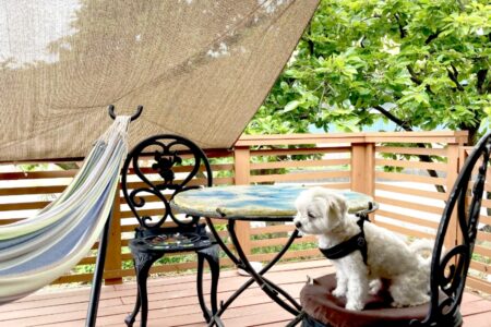 さらに、通りからの視線を遮る工夫を施し、プライバシーを確保しつつ、夏は犬用プール、晴れの日はテーブルセットでお茶やハンモックでの休憩など、多目的に使える空間になりました。
